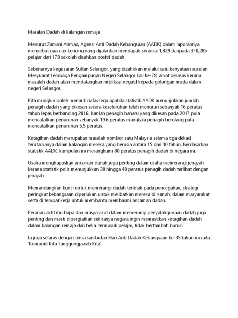 Latest Gejala Penyalahgunaan Dadah Di Malaysia Dan Langkah Membanterasnya from imgv2-2-f.scribdassets.com Di malaysia, jabatan kimia malaysia mengesahkan terdapat 27 jenis nps dikesan sejak 2012 hingga 2017 berdasarkan rampasan dadah oleh jsjn dan juga dari senarai antarabangsa nps yang dikemas kini mengikut convention on psychoactive substances 1972 oleh suruhanjaya dadah narkotik (cnd). Jadual 3 menunjukkan perbandingan penagih yang dikesan mengikut negeri bagi tahun 2012 dan sepanjang tahun 2012, kes penagihan dadah di malaysia menunjukkan penurunan sebanyak 19.74% berbanding tahun 2011 (11,194 orang). Mereka singgah di rumah empunya bot, yang juga merupakan bekas anak bina di baitul taubah. Mengikut statistik agensi anti dadah kebangsaan (aadk), jumlah penagih dadah menurun dengan ketara iaitu daripada 30,844 kes pada 2016 kepada 25,922 kes. Apps ini memaparkan statistik jenis dadah yang paling popular di malaysia, statistik penagih. Senarai 402 sekolah bermasalah yang dikeluarkan kemneterian pendidikan malaysia. Setelah race ini masih ada satu balapan lagi yaitu motogp. Ayuh bersama membasmi penyalahgunaan dadah di malaysia!