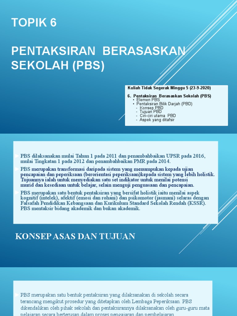 Penilaian berasaskan sekolah (pbs) 1. Panduan pengurusan peperiksaan bagi cbk. (peratusan wajaran berbeza mengikut mata pelajaran). Pbd mengekalkan semua konsep pentaksiran sekolah dan melibatkan penentuan tahap penguasaan murid dalam setiap mata pelajaran. Sebagai pembelajaran, untuk pembelajaran dan tentang pembelajaran.